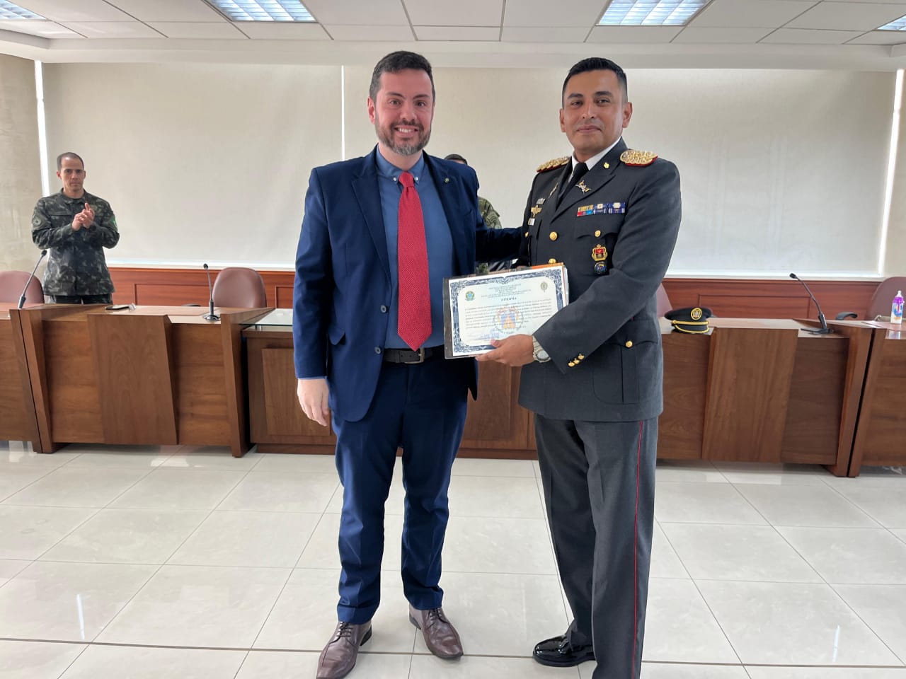 Durante a missão, a comitiva do IMM/PPGCM formalizou a renovação do acordo de cooperação técnica entre as duas instituições. Tal renovação é fundamental, pois garante a continuidade da mobilidade discente, permitindo que oficiais equatorianos possam cursar doutorado no Brasil. Um dos pontos altos da visita foi a entrega do diploma de Doutor em Ciências Militares ao Major Santiago Manzano, o primeiro doutor equatoriano formado após a assinatura deste acordo de cooperação.