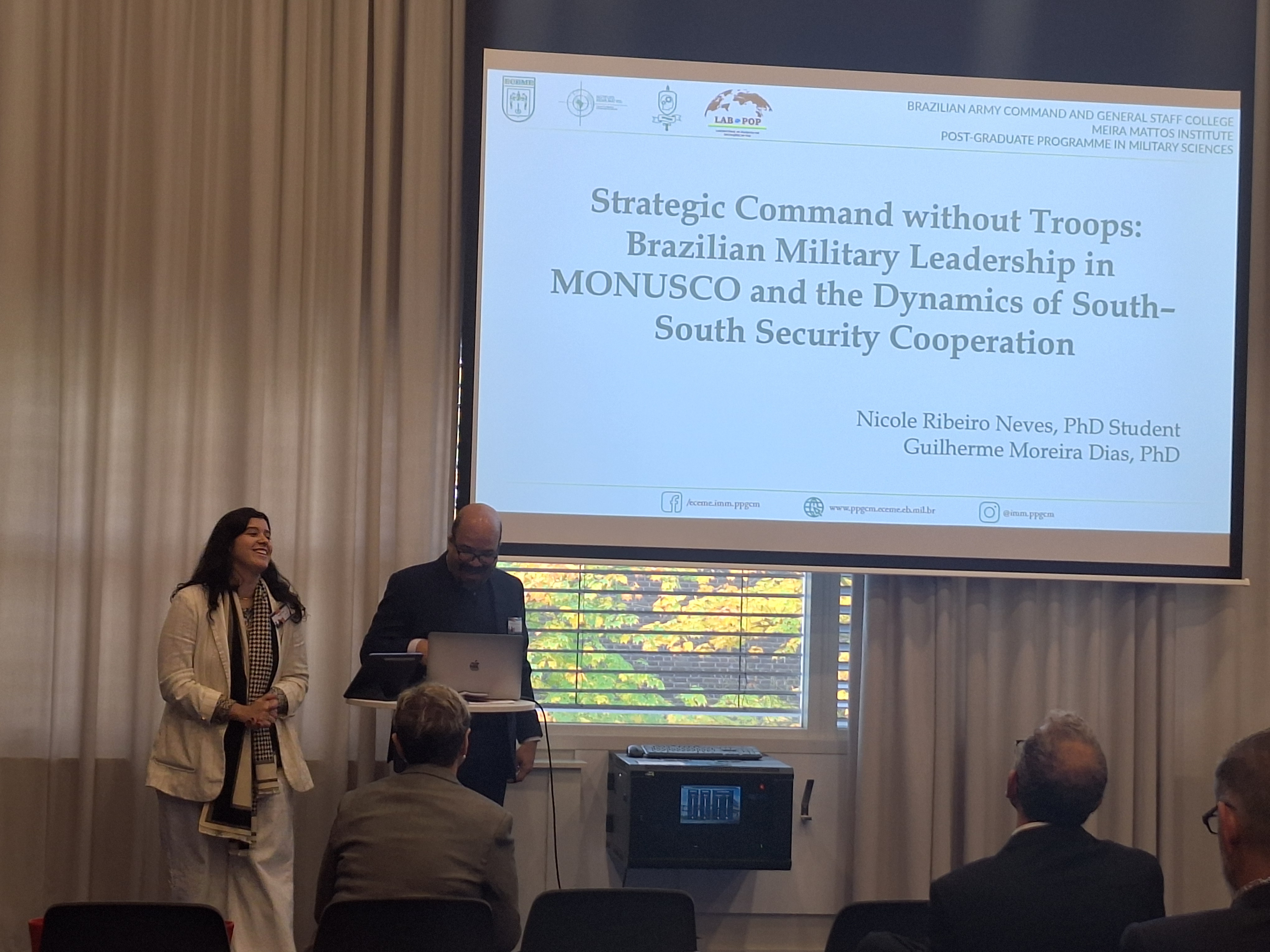 No Grupo de Trabalho 01 "War Studies" Guilherme Moreira Dias e Nicole Ribeiro Neves apresentaram "Strategic Command without Troops: Brazilian Military Leadership in MONUSCO and the Dynamics of South–South Security Cooperation.".