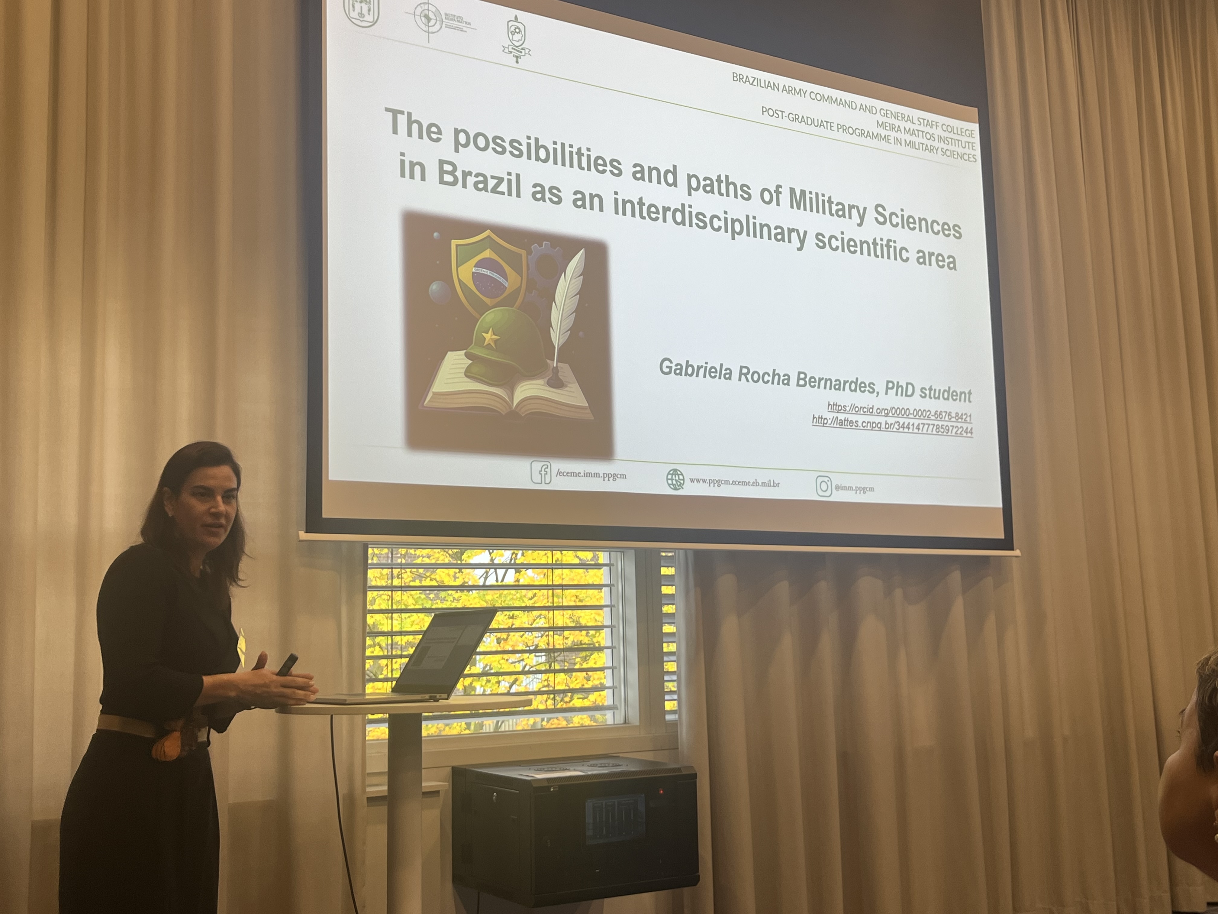 No Grupo de Trabalho 01 "War Studies", Gabriela Rocha Bernardes apresentou "The possibilities and paths of Military Sciences in Brazil.".