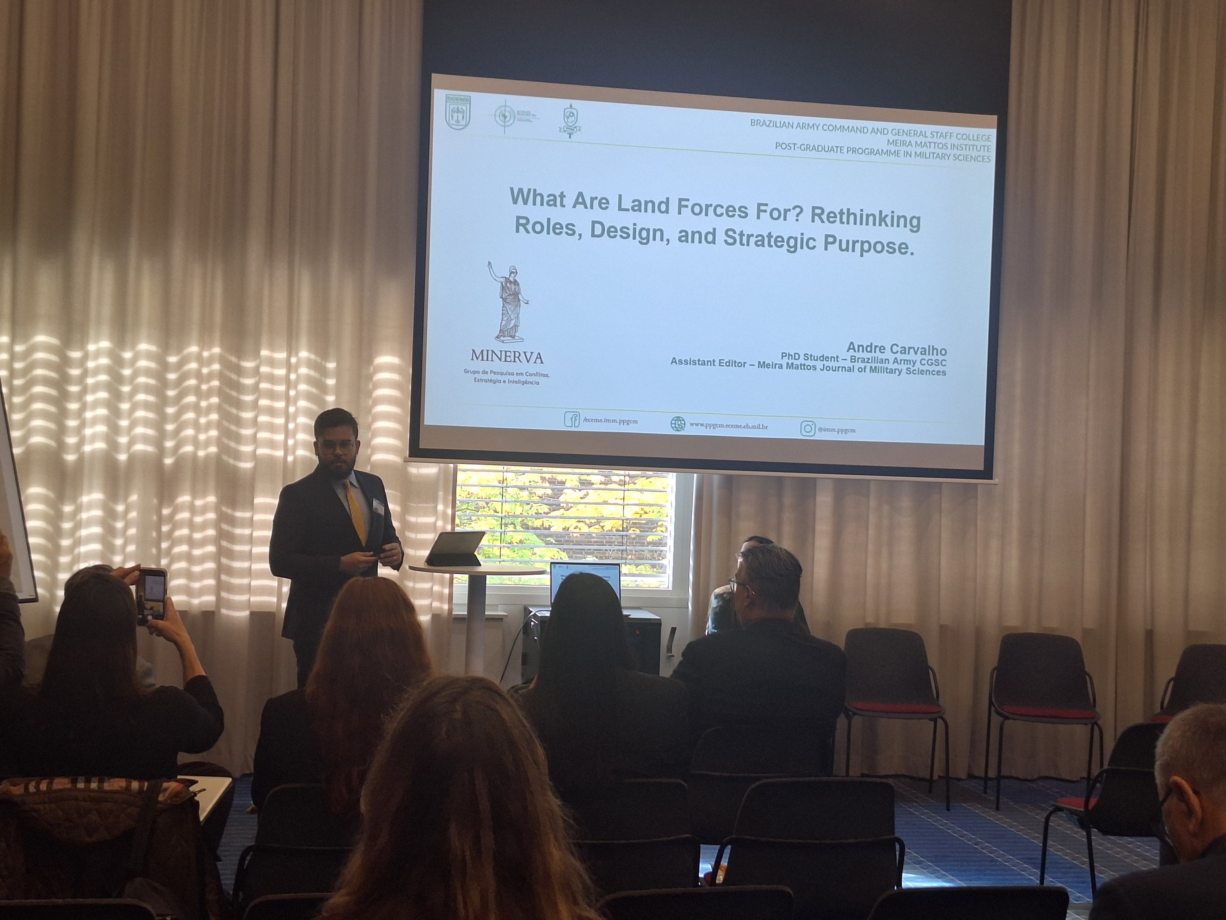 No Grupo de Trabalho 01 "War Studies", Andre Luiz Viana Cruz de Carvalho apresentou "What Are Land Forces For? Rethinking Roles, Design, and Strategic Purpose in a Fragmented World.".
